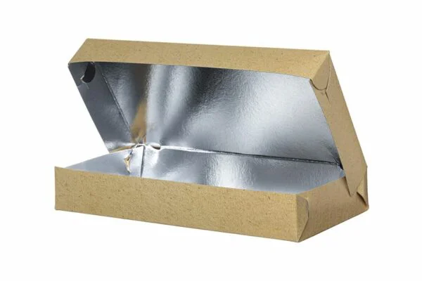 Το σκεύος διαθέτει εσωτερική πλαστική επίστρωση από metalised PET. Συγκριτικά με το απλό αλουμίνιο, το μεταλλοποιημένο PET προστατεύει τα τρόφιμα από τις επικίνδυνες εκπομπές αλουμινίου κατά την επαφή με τα βρώσιμα, όταν είναι πολύ αλμυρά ή όξινα, όπως συμβαίνει στα ψητά σχάρας.