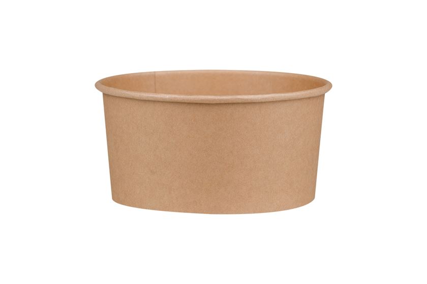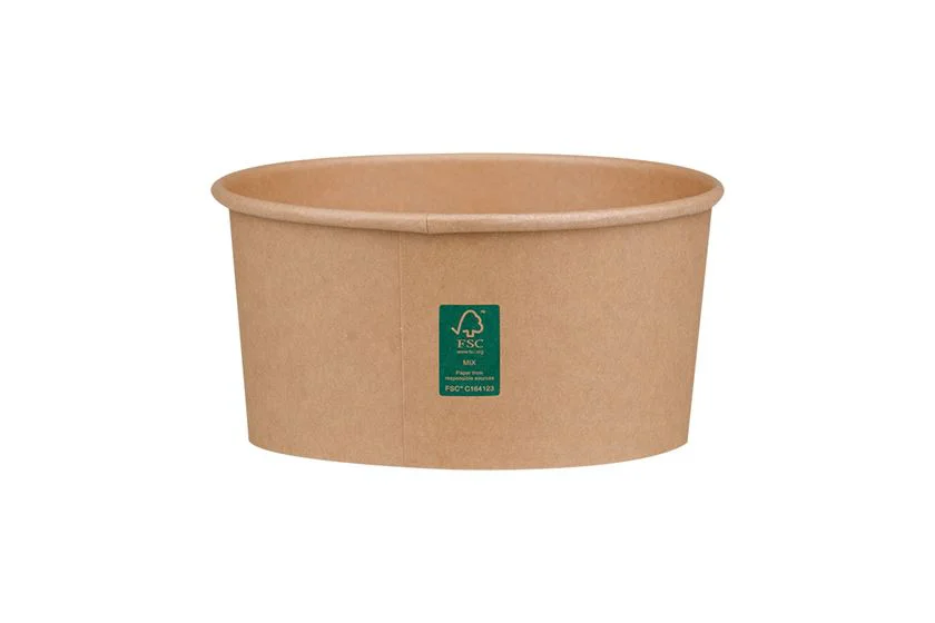 Χάρτινο kraft σκεύος φαγητού (ψηλό) με επίστρωση PE και πιστοποίηση FSC®. Μέγιστη θερμοκρασία τροφίμων κατά το σερβίρισμα 80°C για 1 ώρα. Αντέχει στην κατάψυξη στους -18°C.