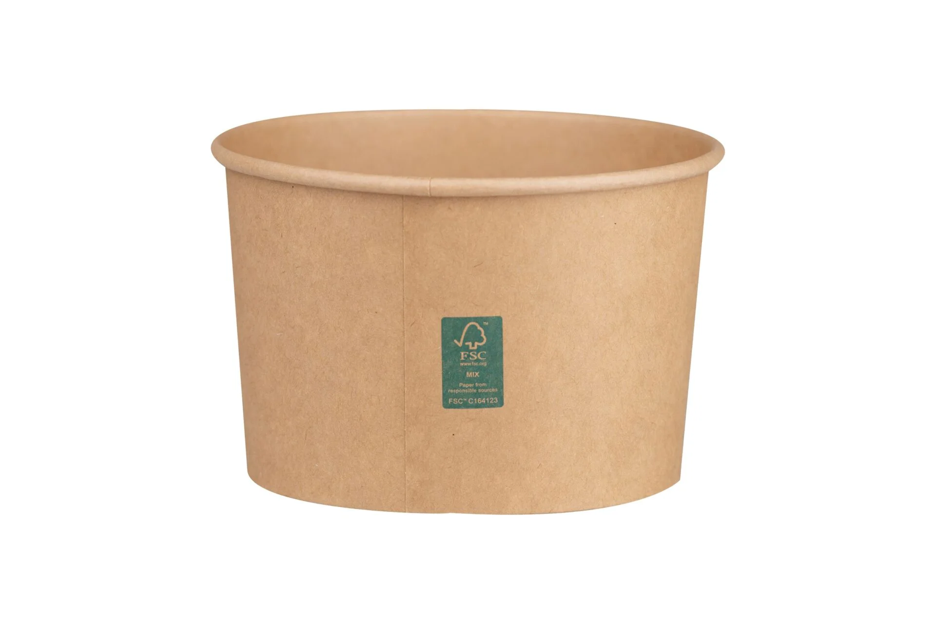 Χάρτινο kraft σκεύος φαγητού (ψηλό) με επίστρωση PE και πιστοποίηση FSC®. Μέγιστη θερμοκρασία τροφίμων κατά το σερβίρισμα 80°C για 1 ώρα. Αντέχει στην κατάψυξη στους -18°C.